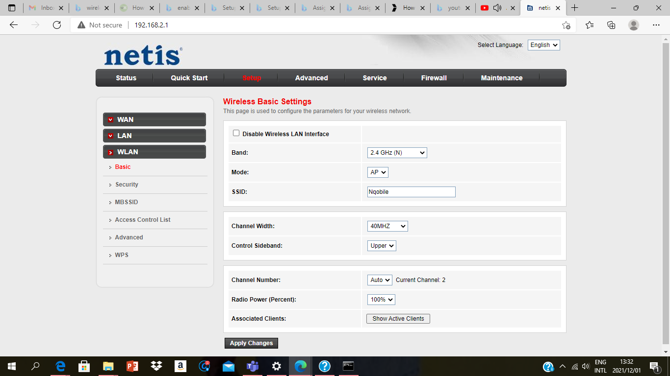 These are steps I followed to set up Netis route and the SSID (List of available networks )changed to my name Nqobile.
